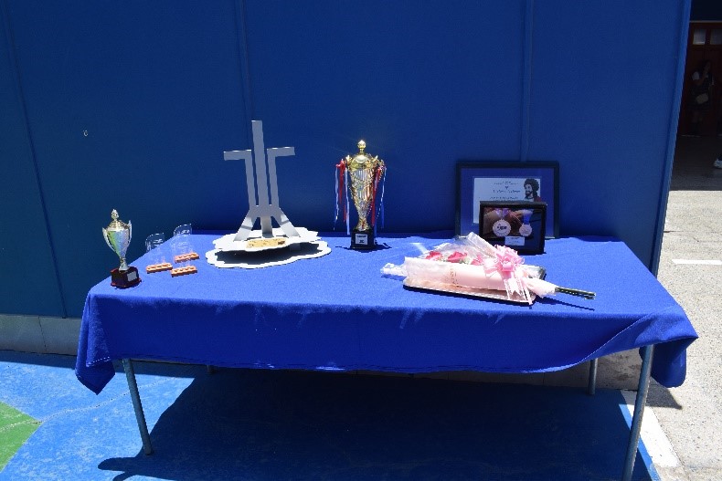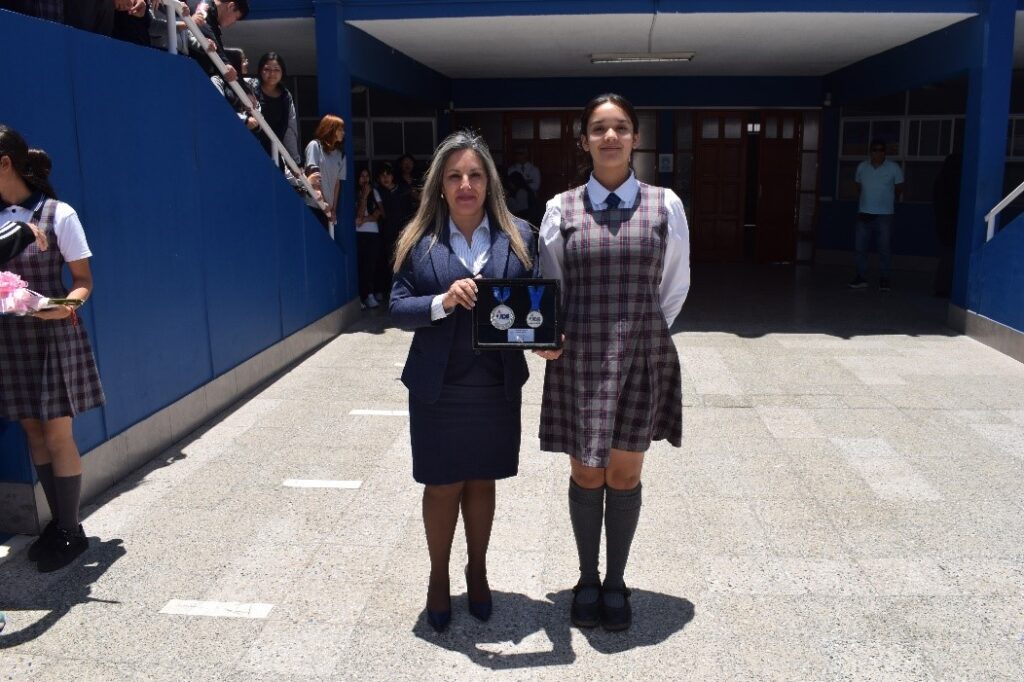 Durante la ceremonia, Catalina Sánchez hizo entrega a nuestra directora, señora Marcela Abarca Moyo, de las medallas obtenidas en los torneos regionales de los Juegos Escolares en 2023 y 2024, donde obtuvo el segundo lugar de la competencia.