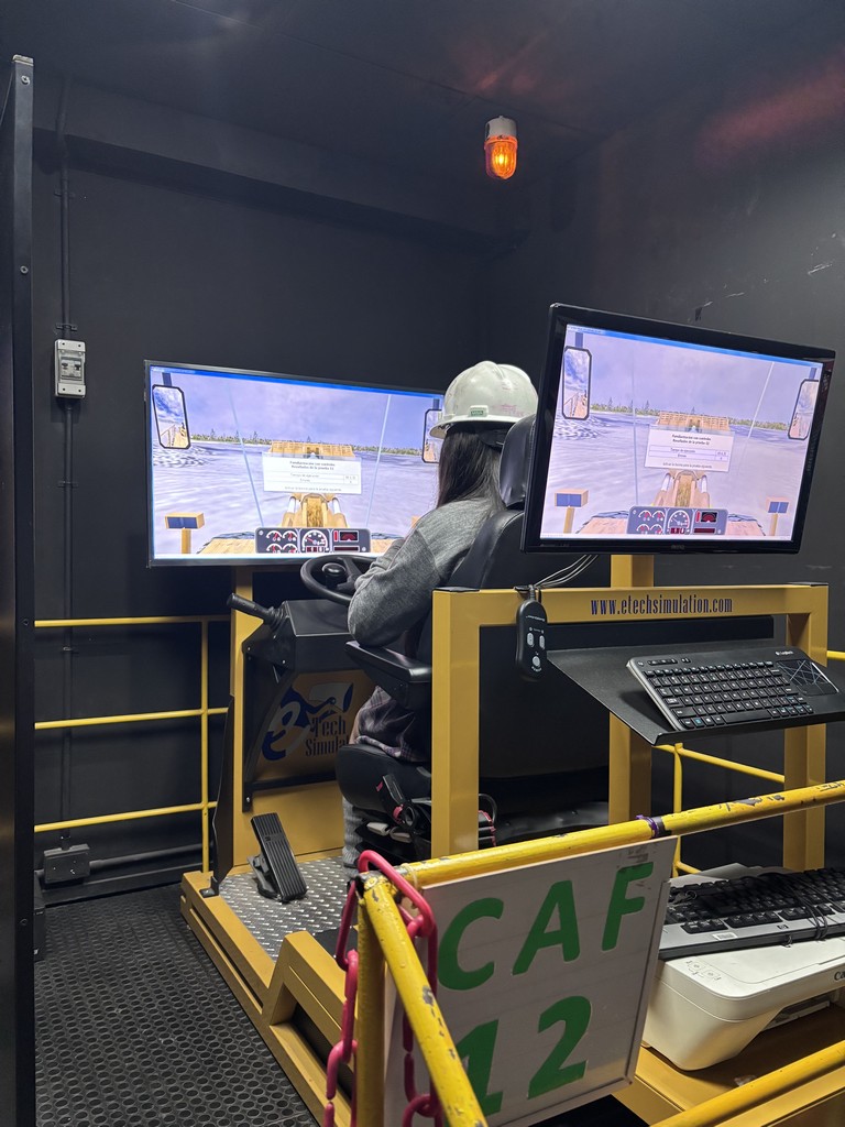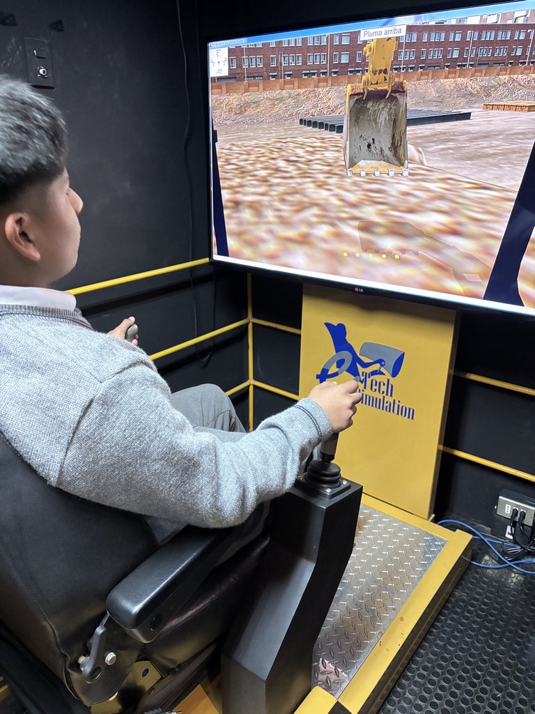 Los estudiantes tuvieron la oportunidad de maniobrar 5 simuladores: Motoniveladora, Excavadora, Cargador Frontal y Tractor neumático. En cada uno de ellos, los alumnos, pudieron hacer uso de comandos, palancas, Stick, pedales, volante etc. Estos simuladores ayudan a nuestros estudiantes a identificar y operar los controles del camión de carga de una manera eficiente, pudiendo además hacer frente a situaciones de emergencia.