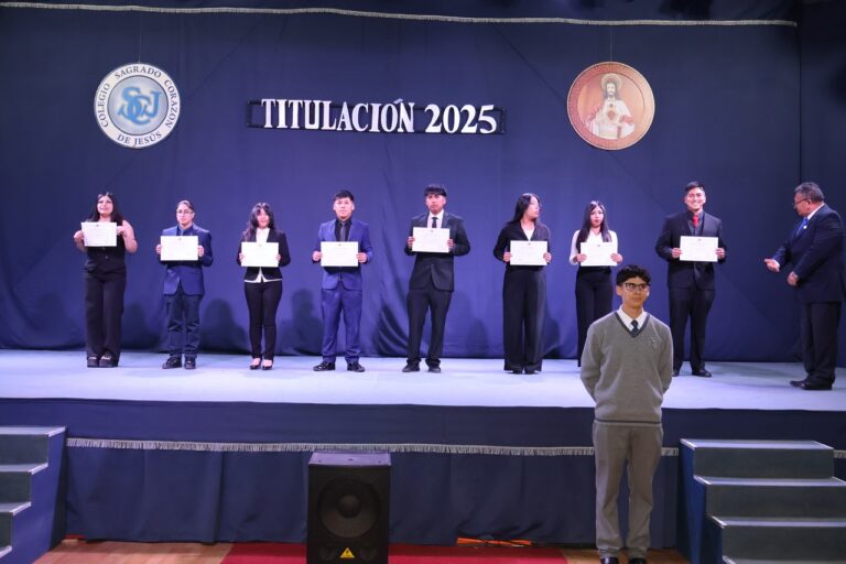 El jueves 27 de noviembre nuestro colegio Sagrado Corazón de Jesús celebró la titulación de los estudiantes de la promoción 2024 de las especialidades, Administración con mención en Recursos Humanos, Dibujo Técnico y Explotación Minera, en una jornada que visibilizó la culminación exitosa del proceso.
